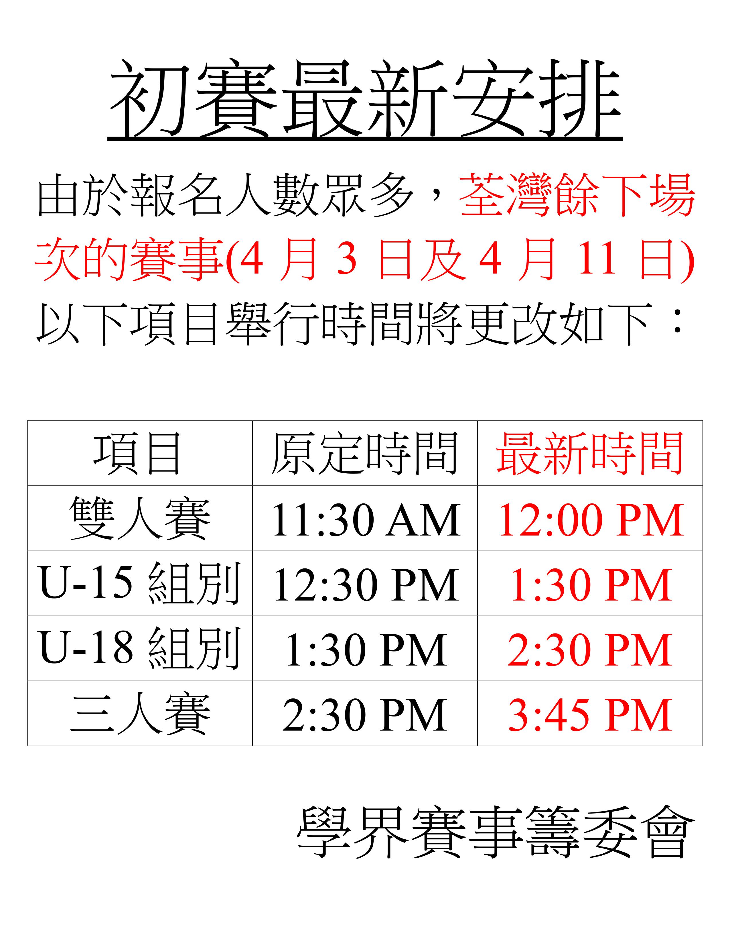 由於報名人數眾多,荃灣餘下場次的賽事(4月3日及4月11日)